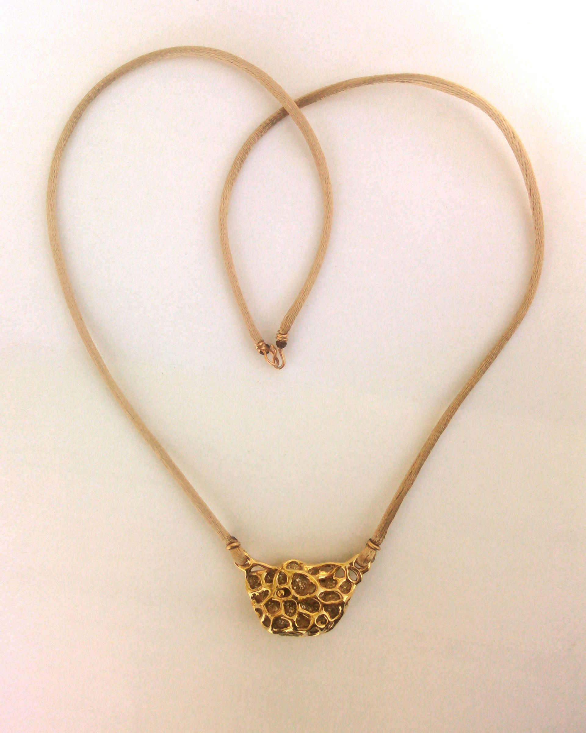 Matériaux : BRONZE JAUNE, PIERRE BRUTE, CORDON POLYESTER